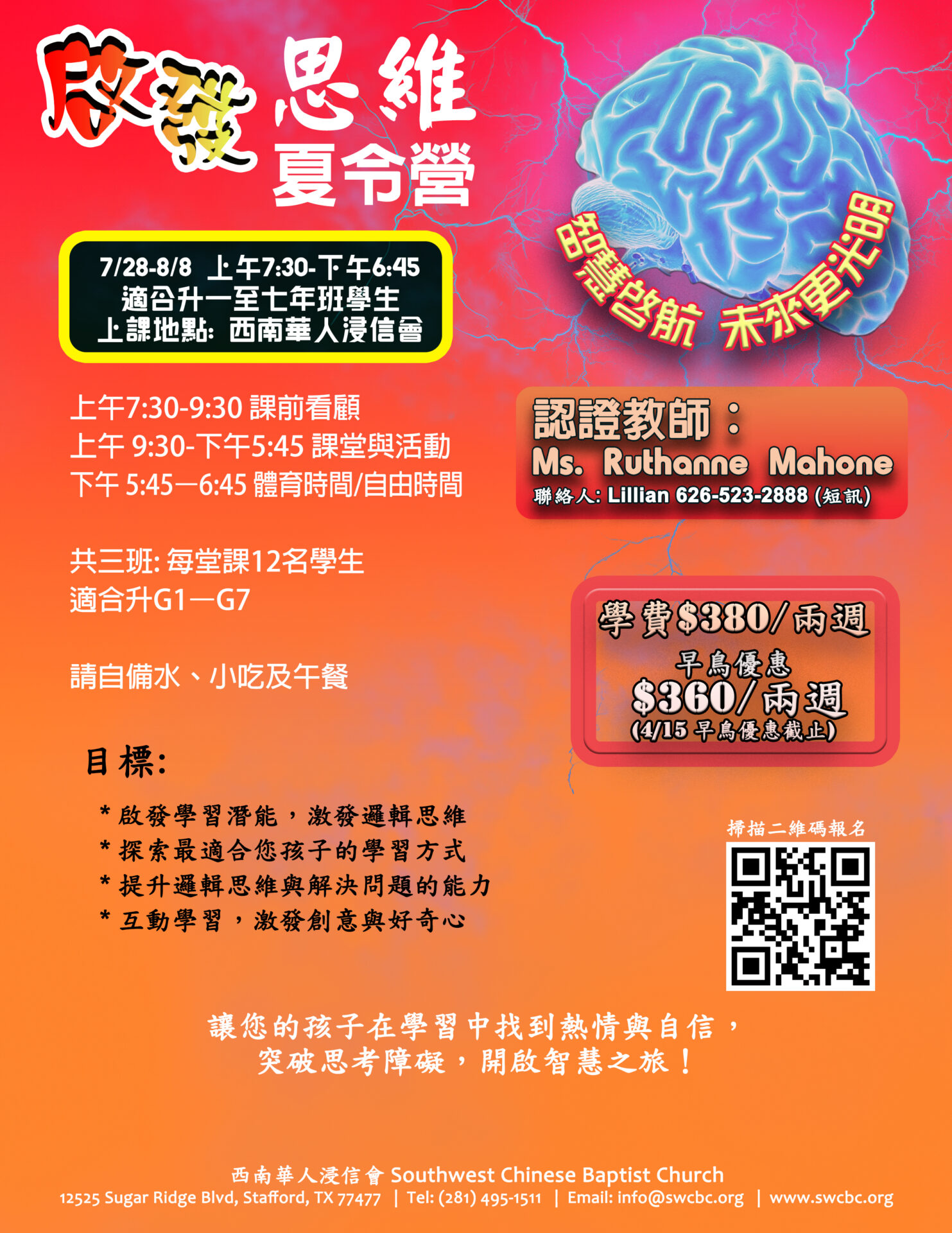 此課程需特別編班,此登記僅作報名之用。夏令營負責人葉陳莉娜將透過電話或短訊通知錄取結果。